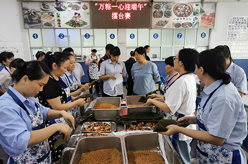 在端午節(jié)來臨之際,公司不但向所有員工發(fā)放粽子、咸鴨蛋等傳統(tǒng)美食,還組織員工舉辦了一場別開生面的萬“粽”一心迎端午職工包粽子擂臺賽,今年共有26名員工參與擂臺賽。