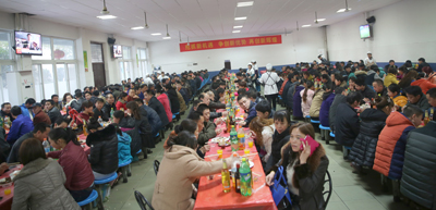 春節(jié)前夕,公司行政、工會經(jīng)過摸底統(tǒng)計,共有600多名外地員工不回老家過春節(jié),為了讓他們在公司也能度過一個快樂、祥和的春節(jié),公司決定像往年一樣,為不回老家過春節(jié)的員工舉辦“同吃年夜飯,歡度春節(jié)”活動。同吃年夜飯期間,公司工會副主席高文生奔波公司南區(qū)、新區(qū)生產(chǎn)基地食堂,代表企業(yè)向每一位員工表達(dá)了新春的問候和祝福,對員工們?yōu)槠髽I(yè)的不斷健康發(fā)展付出的辛勤勞動表達(dá)了感激之情。