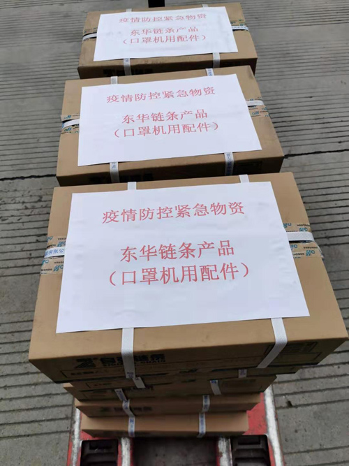 在當(dāng)前“新冠肺炎”防控依然嚴(yán)峻的形勢(shì)下,口罩是全國(guó)各地急需緊缺物資,而口罩機(jī)鏈條是口罩生產(chǎn)設(shè)備的必備零件。東華于2月10日開工,當(dāng)天深夜,國(guó)內(nèi)市場(chǎng)部接到兩個(gè)特殊訂單,一個(gè)是福建某客戶急需300條口罩機(jī)鏈條,希望盡快發(fā)貨;另一個(gè)是廣東某客戶需要1000條口罩機(jī)鏈條,要求2月20日前必須交貨。