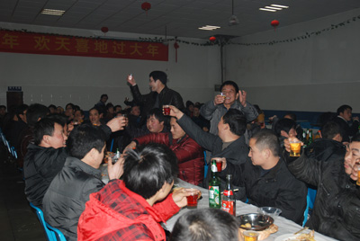 席間,工會(huì)主席魯小林、副主席高文生奔波兩地,向每一位員工表達(dá)了新春的問(wèn)候和祝福,并囑咐大家一定要多打電話給家鄉(xiāng)的親人表示祝福和問(wèn)候,同時(shí),對(duì)員工們?yōu)闁|華的發(fā)展付出的辛勤勞動(dòng)表達(dá)了感激之情。廣大員工在同吃年夜飯,同喝喜慶酒,同吃餃子、同慶佳節(jié)之際,也促進(jìn)了彼此的交流、增強(qiáng)了彼此的感情。整個(gè)年夜飯活動(dòng)始終處在一派熱鬧、祥和的氛圍之中。