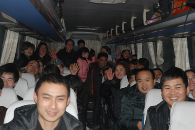 今年春節(jié),公司在安徽六安、江西廣豐、河南鄭州、湖北武漢、湖南長(zhǎng)沙等員工較集中的方向設(shè)置了10條線路的包車,除利用其他方式回鄉(xiāng)的員工,共有365人乘坐包車。在傳動(dòng)鏈?zhǔn)聵I(yè)部工作的江西員工袁根英說(shuō),以前每年回家都很難買到火車票,而且要到很遠(yuǎn)的蕭山南站坐火車很不方便,自從近年公司組織包車送他們回家后,她說(shuō)又方便又省心了,感覺(jué)很溫暖,企業(yè)為員工考慮的很周到,感激之情溢于言表。