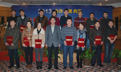 最后,內(nèi)銷公司總經(jīng)理戴迪漢分別宣讀了東華集團和盾牌公司2012年優(yōu)秀經(jīng)銷商名單,宣碧華董事長向優(yōu)秀經(jīng)銷商頒發(fā)了榮譽證書并合影留戀。