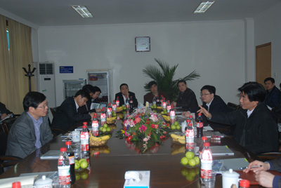 宣碧華董事長(zhǎng)首先陪同徐書(shū)記一行到南區(qū)生產(chǎn)現(xiàn)場(chǎng)進(jìn)行了調(diào)研,隨后進(jìn)行座談。座談會(huì)上,宣董事長(zhǎng)向徐書(shū)記一行匯報(bào)了東華集團(tuán)近年發(fā)展情況及未來(lái)發(fā)展目標(biāo),重點(diǎn)介紹了近年?yáng)|華利用國(guó)際金融危機(jī)的有利時(shí)機(jī),實(shí)施“走出去”戰(zhàn)略取得的成效和下一步國(guó)際化戰(zhàn)略目標(biāo)。