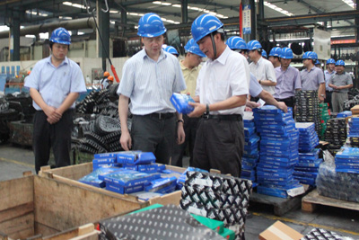 9月9日,余杭區(qū)區(qū)長姜軍、副區(qū)長屠冬冬率區(qū)政府辦、安全監(jiān)管局、經發(fā)局、公安分局、質監(jiān)余杭分局、貿易局、消防大隊、新聞媒體記者及余杭經濟開發(fā)區(qū)相關科室負責人共十多人到我集團進行安全生產大檢查。集團董事長宣碧華、副總經理廖杭州等高層陪同姜區(qū)長一行對南區(qū)生產現(xiàn)場進行了安全檢查。