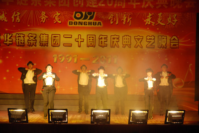 整場(chǎng)慶典晚會(huì)由18個(gè)文藝節(jié)目組成,其中16個(gè)節(jié)目由東華員工自編、自演,這些節(jié)目包括歌舞、小品、雜技、啞劇等等,節(jié)目集思想性、藝術(shù)性和觀賞性為一體。員工們以優(yōu)美的歌聲、輕盈的舞姿、蓬勃的激情,充分展示了東華創(chuàng)建20年來所發(fā)生的巨大變化和取得的輝煌業(yè)績(jī),栩栩如生地體現(xiàn)了東華兒女團(tuán)結(jié)奮進(jìn)、求真務(wù)實(shí)、開拓創(chuàng)新的良好形象和精神風(fēng)貌。宣碧華董事長(zhǎng)的一首清唱《讀毛主席的書》,把整臺(tái)晚會(huì)推向了高潮,員工們掌聲不斷。