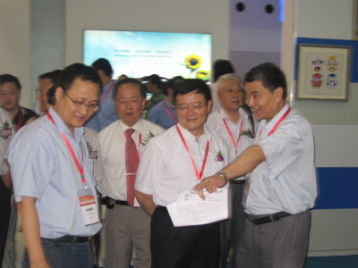 寶鋼集團(tuán)董事長徐樂江、中國金屬學(xué)會(huì)常務(wù)副理事長洪及鄙到東華展臺(tái)參觀