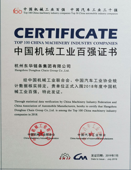 近日,中國機(jī)械工業(yè)聯(lián)合會、中國汽車工業(yè)協(xié)會聯(lián)合發(fā)布了2018年中國機(jī)械工業(yè)百強(qiáng)、汽車工業(yè)三十強(qiáng)企業(yè)名單。我公司連續(xù)四年躋身中國機(jī)械工業(yè)百強(qiáng)榜,排名第59位,也是中國鏈傳動行業(yè)唯一上榜企業(yè)。