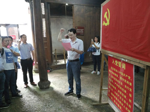 在被服廠舊址黨團(tuán)宣誓室,全體黨員在黨委書記魯小林的帶領(lǐng)下進(jìn)行入黨宣誓,重溫入黨誓詞,激發(fā)前行動(dòng)力。
