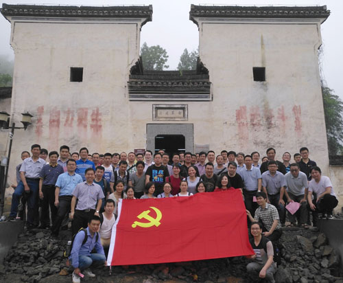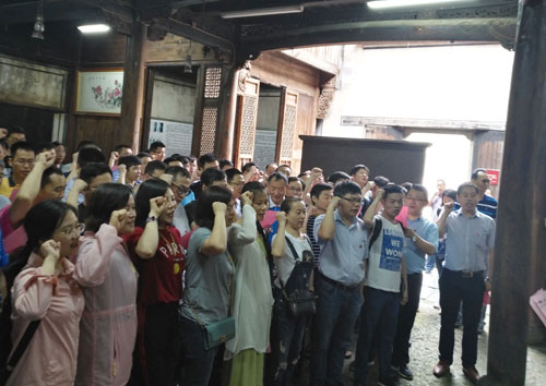 全體黨員在新四軍蘇浙軍區(qū)第一縱隊(duì)隨軍被服廠舊址合影。