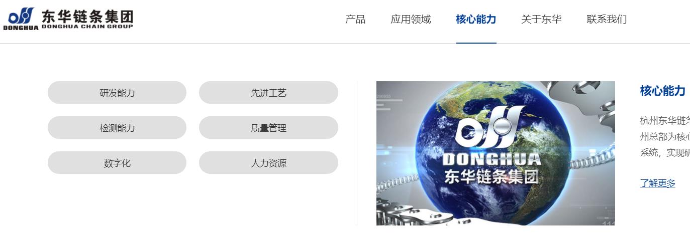 網(wǎng)站包含五大模塊:產(chǎn)品、應用領域、核心能力、關于東華、聯(lián)系我們
