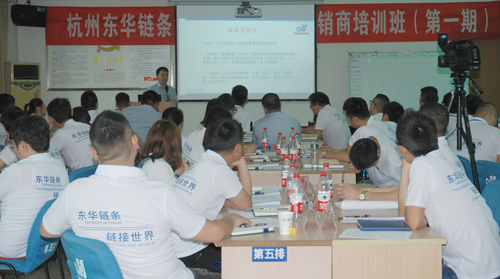 東華鏈條集團創(chuàng)建27年來,產(chǎn)品已銷售90多個國家和地區(qū),特別是國內(nèi)的銷售早已遍布全國各地。許多經(jīng)銷商從東華創(chuàng)建開始就一直銷售東華鏈條,如今,這些經(jīng)銷商的兒女已逐步成為銷售的主力軍。他們勇于創(chuàng)新、敢于拼搏,但比父輩缺少經(jīng)驗。為了讓他們更熟悉企業(yè)和產(chǎn)品,更好地為終端客戶提供優(yōu)質(zhì)服務(wù),更好更快地成長,東華特別策劃了第一期“新生代”經(jīng)銷商培訓(xùn)班,于6月12日至13日在杭州總部開班,來自全國的51名“新生代”經(jīng)銷商統(tǒng)一穿著東華白色T恤衫參加學(xué)習(xí)并順利結(jié)業(yè)。