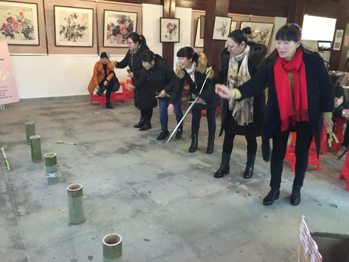 超山是國家AAAA級旅游景區(qū),江南三大賞梅勝地之首。今天的超山梅花盛開,細雨蒙蒙,大家撐著雨傘,漫步在“十里梅花香雪?!敝校M情領略“煙雨梅林”的景致;觀“宋梅”賞“唐梅”,在“大明堂”品茶、賞名畫、聽課、看電影、游戲,玩的樂呵呵。