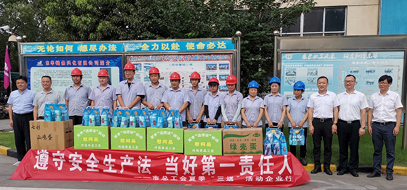 最后,來(lái)訪領(lǐng)導(dǎo)向一線員工開展“送安全、送法律、送清涼”關(guān)愛(ài)活動(dòng),把200份防暑物資送到員工手中,并祝大家身體健康,工作取得更好的成績(jī)。