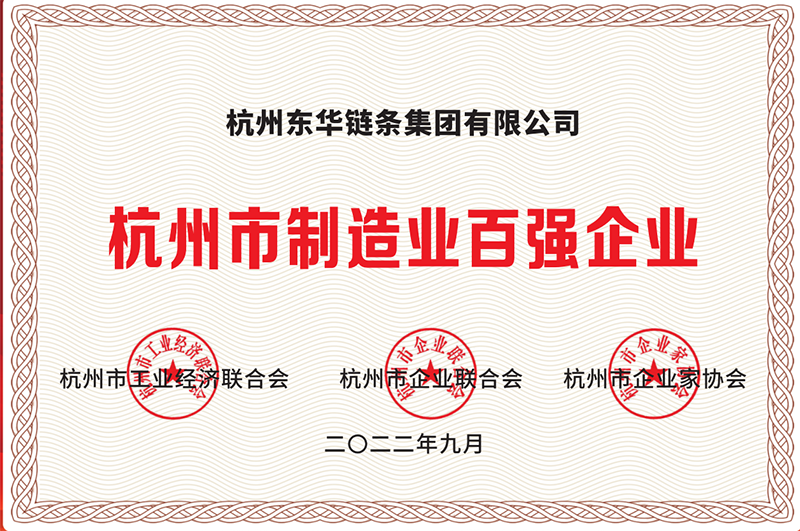 日前,杭州市工業(yè)經(jīng)濟聯(lián)合會、企業(yè)聯(lián)合會、企業(yè)家協(xié)會在市民中心召開了2022杭州市百強企業(yè)榜單發(fā)布會。東華鏈條集團躋身杭州市制造業(yè)百強企業(yè)榜第44位。