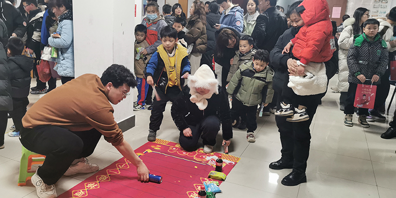 在公寓職工活動(dòng)室,到處高掛著喜慶的燈籠,洋溢著節(jié)日的氛圍。公司各事業(yè)部、職能部門共12個(gè)分工會(huì)分別設(shè)置游戲節(jié)目,不僅有元宵節(jié)傳統(tǒng)的猜燈迷、投壺、飛鏢、套圈、投沙包等,也有新意的倒著說(shuō)、掌上明珠、財(cái)源滾滾、摸彩珠等豐富多彩的小節(jié)目?,F(xiàn)場(chǎng)隨處可見員工們帶著孩子一起參加活動(dòng),他們互相合作,協(xié)調(diào)配合完成各種游戲活動(dòng),大大增進(jìn)了親子之間的互動(dòng)交流。