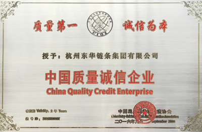 東華鏈條集團再獲“中國質(zhì)量誠信企業(yè)”贊譽