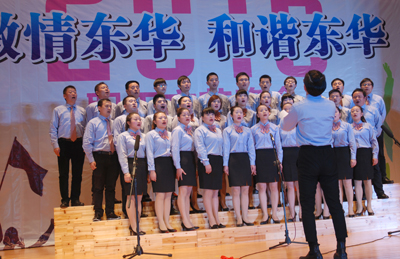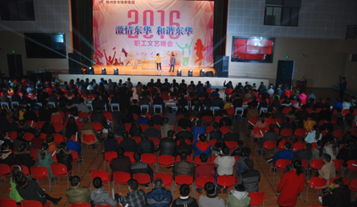 晚會主題為《激情東華,和諧東華》,這是一臺完全由員工自編自導(dǎo)自演的自娛自樂性質(zhì)的晚會,節(jié)目豐富多彩,有獨唱、大合唱、舞蹈、相聲、小品、詩朗誦、戲劇表演等共23個節(jié)目,中間穿插了觀眾抽獎等環(huán)節(jié)。