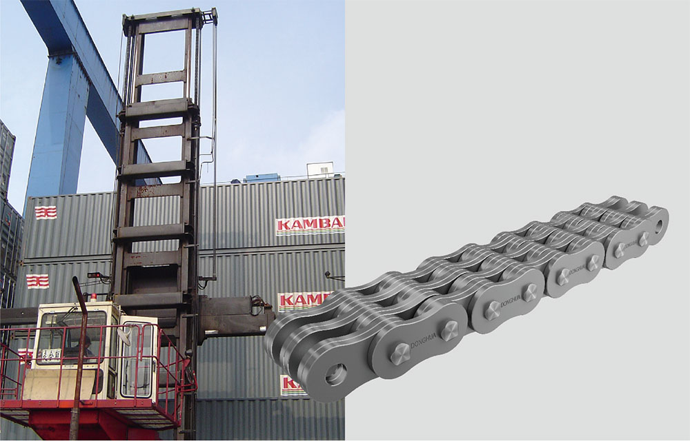 ● 堆高機(jī)用板式鏈:通過優(yōu)化設(shè)計(jì)、特殊工藝,滿足堆高機(jī)承載大、提升高、連續(xù)露天作業(yè)等苛刻工況的使用要求;