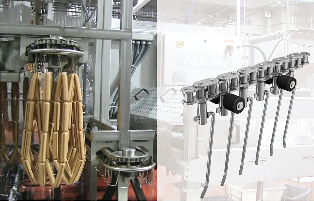 食品行業(yè)用鏈條廣泛應(yīng)用于各類食品加工機(jī)械,如肉類生產(chǎn)線、制面機(jī)械、制糖機(jī)械、紫菜加工設(shè)備、瓜子加工設(shè)備、香腸加工設(shè)備、乳業(yè)灌裝設(shè)備、冰淇淋生產(chǎn)設(shè)備等。