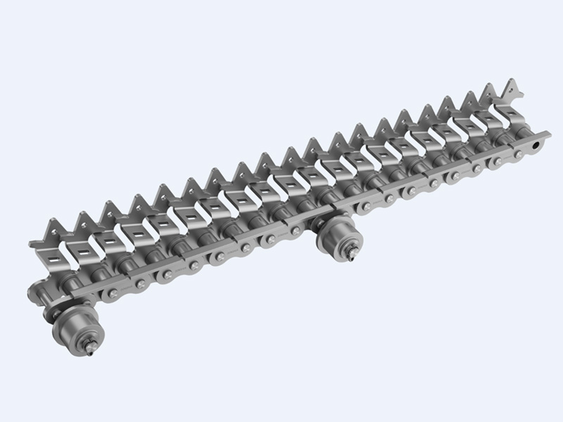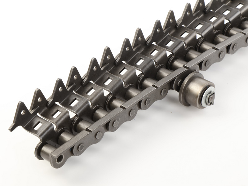 ● 印鐵烘房線鏈條是在標(biāo)準(zhǔn)短節(jié)距精密滾子鏈作為基鏈的基礎(chǔ)上加裝特殊附件的鏈條;典型產(chǎn)品結(jié)構(gòu)為一側(cè)通過安裝內(nèi)、外支撐片來保持鏈條直線度,另一側(cè)通過內(nèi)外附板安裝花架運(yùn)輸物品。