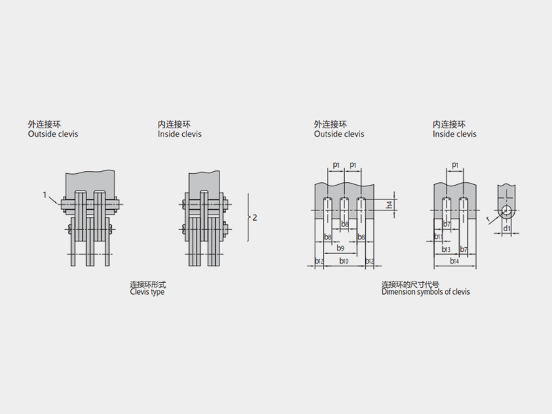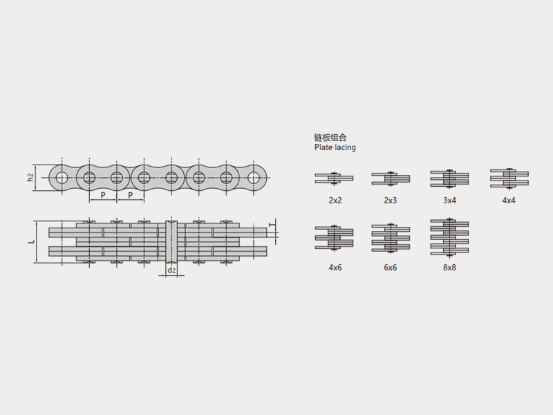 ● 板式鏈符合ISO 4347、ASME B29.8M、JIS B 1804等標準,主要有LH(BL)系列、LL系列和AL系列,以及由標準系列衍生的其它鏈號的板式鏈,節(jié)距范圍5.94mm~76.2mm,可根據(jù)主機用戶的特殊要求進行非標定制,并可配套供應各種類型連接環(huán)(端接頭)、特殊連接件等附件;